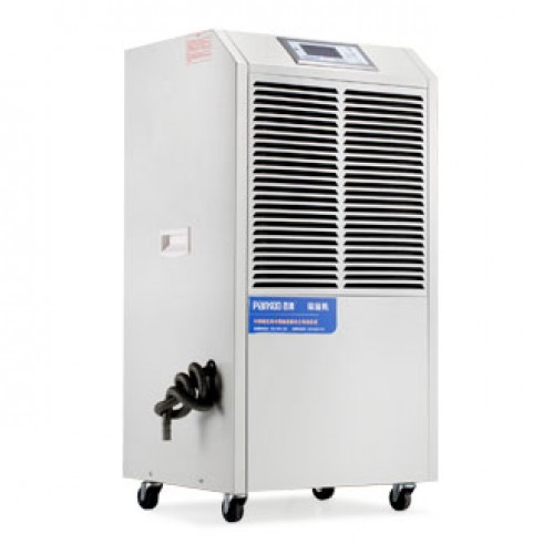 百奥工业除湿机通过风机将潮湿空气抽入机器内部,通过压缩机制冷将蒸发器降温至露点以下,潮湿空气经过蒸发器在表面凝结成水,汇集至接水盘后,流入水箱中,干爽空气经冷凝器重新加热由出风口排出,这样不断循环将室内湿度降低。